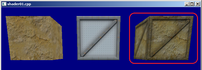 recurso dos shaders. Repare que a textura da terceira caixa é uma combinação