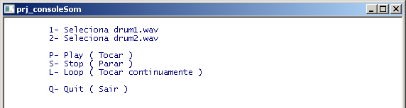 printf (" \t 2- Seleciona drum2.wav \n\n");